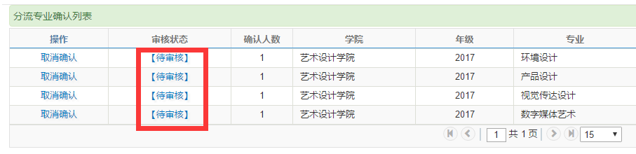 在分流专业确认列表中按照自己的志愿选择专业,并依次点击确认,