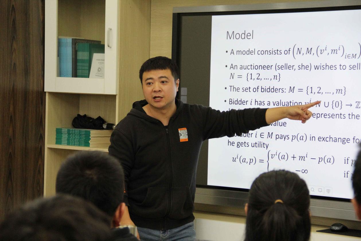 10月07日,我院青年学者论坛举办专家讲座,邀请武汉大学余景升特聘副研究员,做了题为 “An efficient and strategy proof multi item ascending auction under financial constraints” 的学术报告。余老师从选题背景、研究方法、研究结果、实际应用四个方面讲解了论文。论文为异质多产品动态拍卖提出一种新的拍卖机制设计,能在买家具有两个维度的私有信息与预算约束下的最优策略是诚实出价。除此之外,该机制下均衡商品分配位于帕累托效率核中。