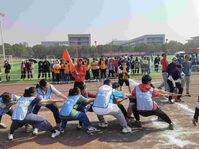 开幕式上,我院教职工带领学生方阵踏上田径赛道,踏着整齐划一的步伐昂首前行,挥舞的红旗、响彻的口号、飒爽的英姿彰显我院师生良好的精神风貌。运动员在赛场中顽强拼搏,尽情挥洒汗水,舞动最美青春,成为赛场上一道靓丽的风景。拔河的齐声呐喊,接力的默契配合彰显了我院师生团结一致,无往不前的精神品质。观赛席上,同学们加油的呐喊声、铿锵有力的击鼓声为经贸运动员提供了强大的精神鼓励。