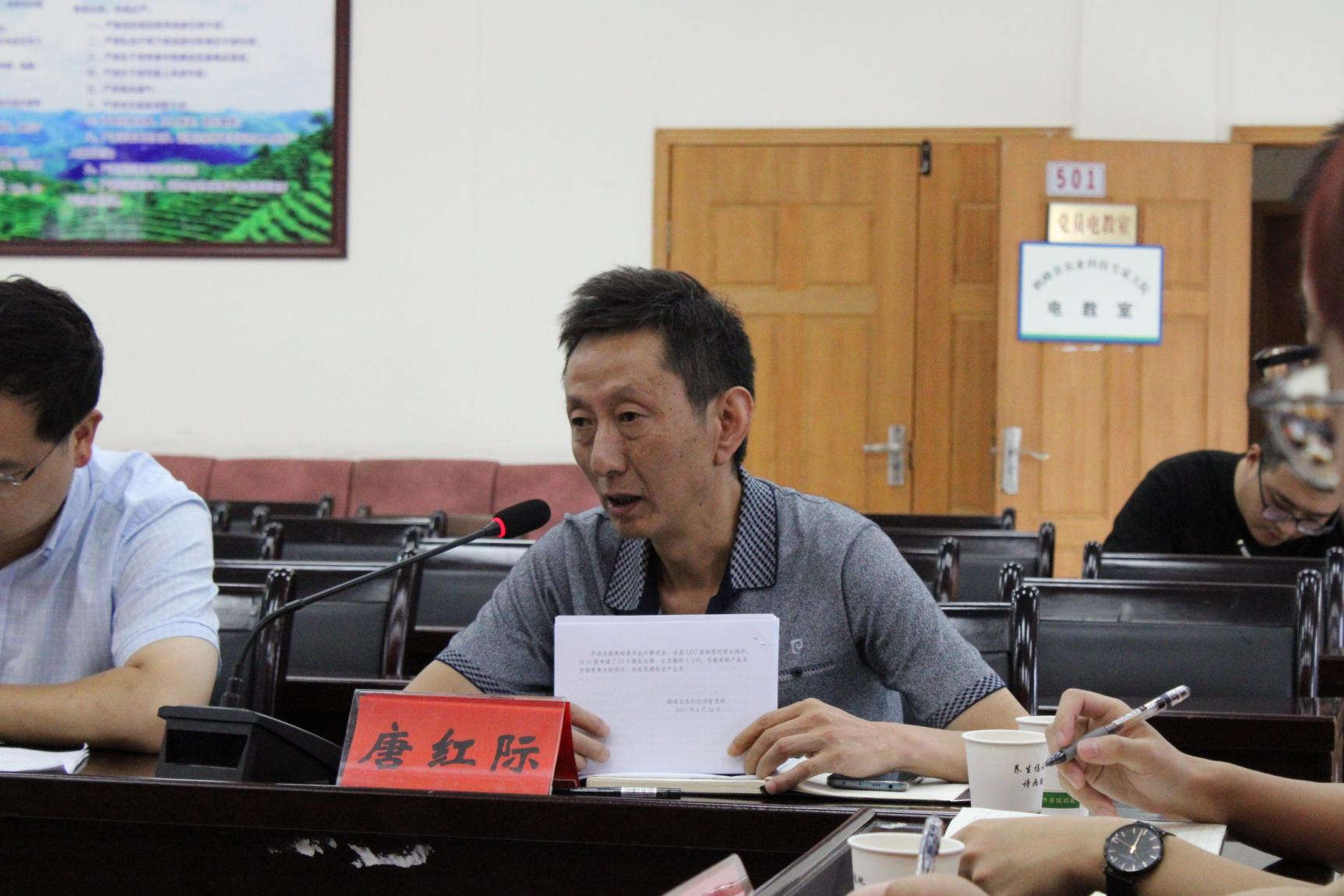 鹤峰县农村经济服务中心农合办负责人唐红际首先介绍了鹤峰县农民合作社的整体发展情况。他结合鹤峰县农民合作社的推广宣传措施、取得的主要成就,重点介绍了农民合作社在提升产品质量、提高生产技术、带动脱贫增收等方面的重要作用。