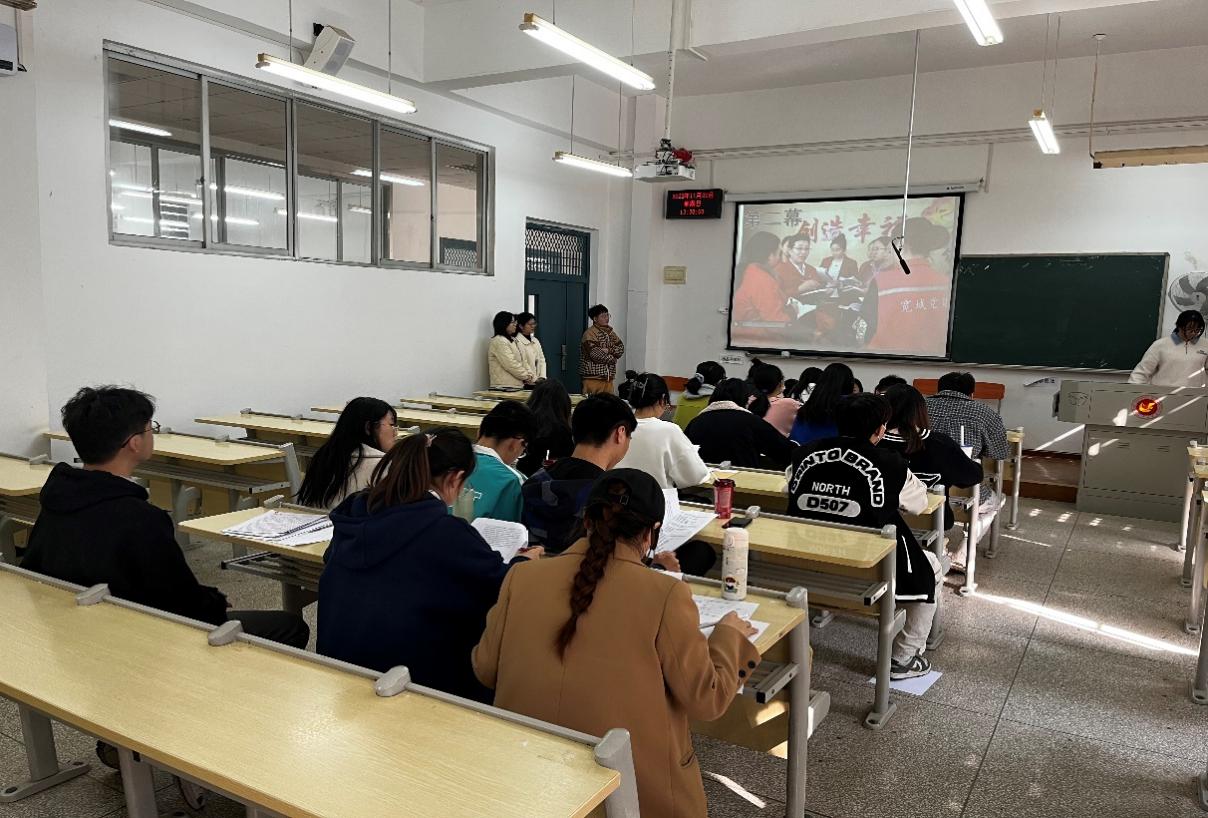 本网讯(通讯员 廖兴威 祝琴)为考察入党发展对象的政治素质,知识水平,帮助其端正入党动机,我院学生党总支于2022年11月20日在教2-103、105、107教室举办2022下半年入党发展对象主题展示会,学院学生党总支书记祝琴老师参加。发展对象共分为6个小组,各小组以PPT加情景剧表演形式开展主题展示,党员评委针对发展对象的入党动机、党团知识、时事热点等问题进行提问。