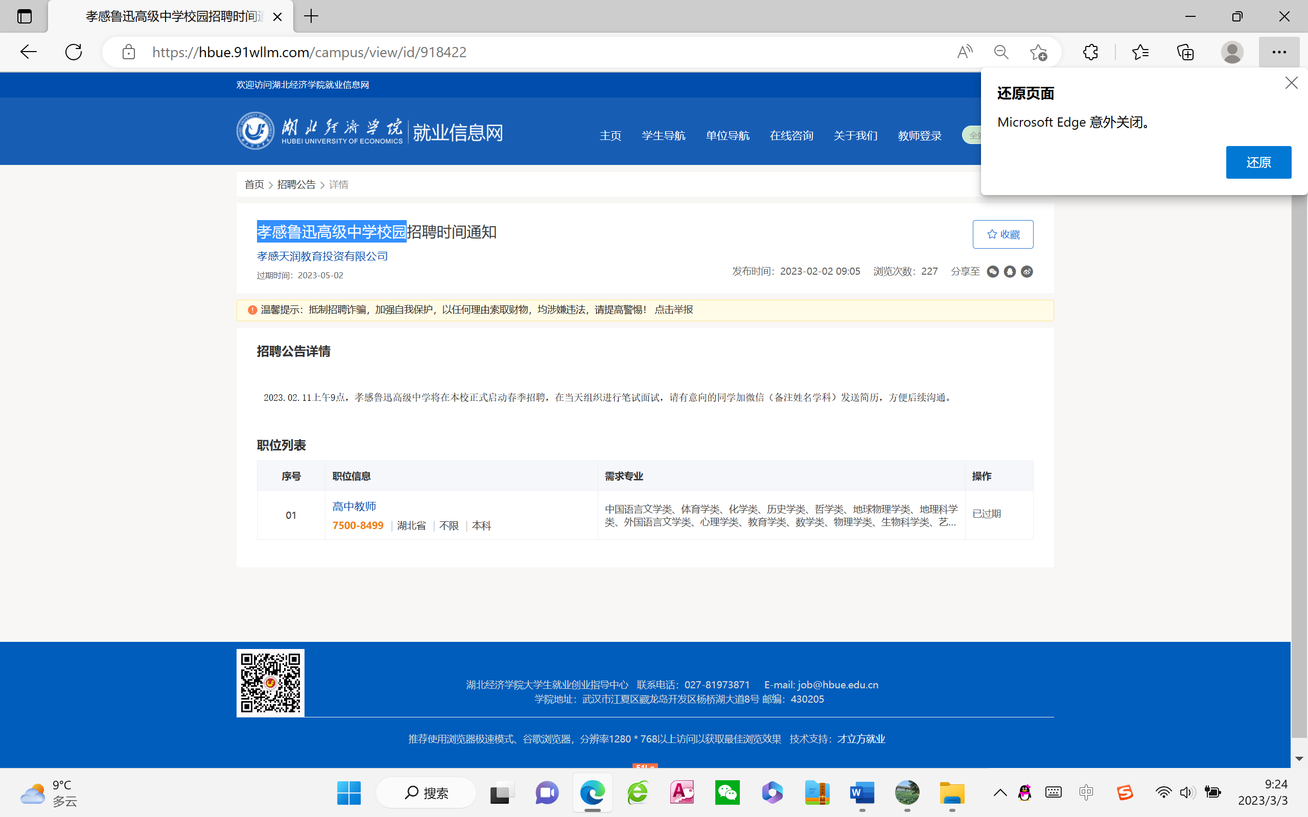 孝感鲁迅高级中学校园招聘信息