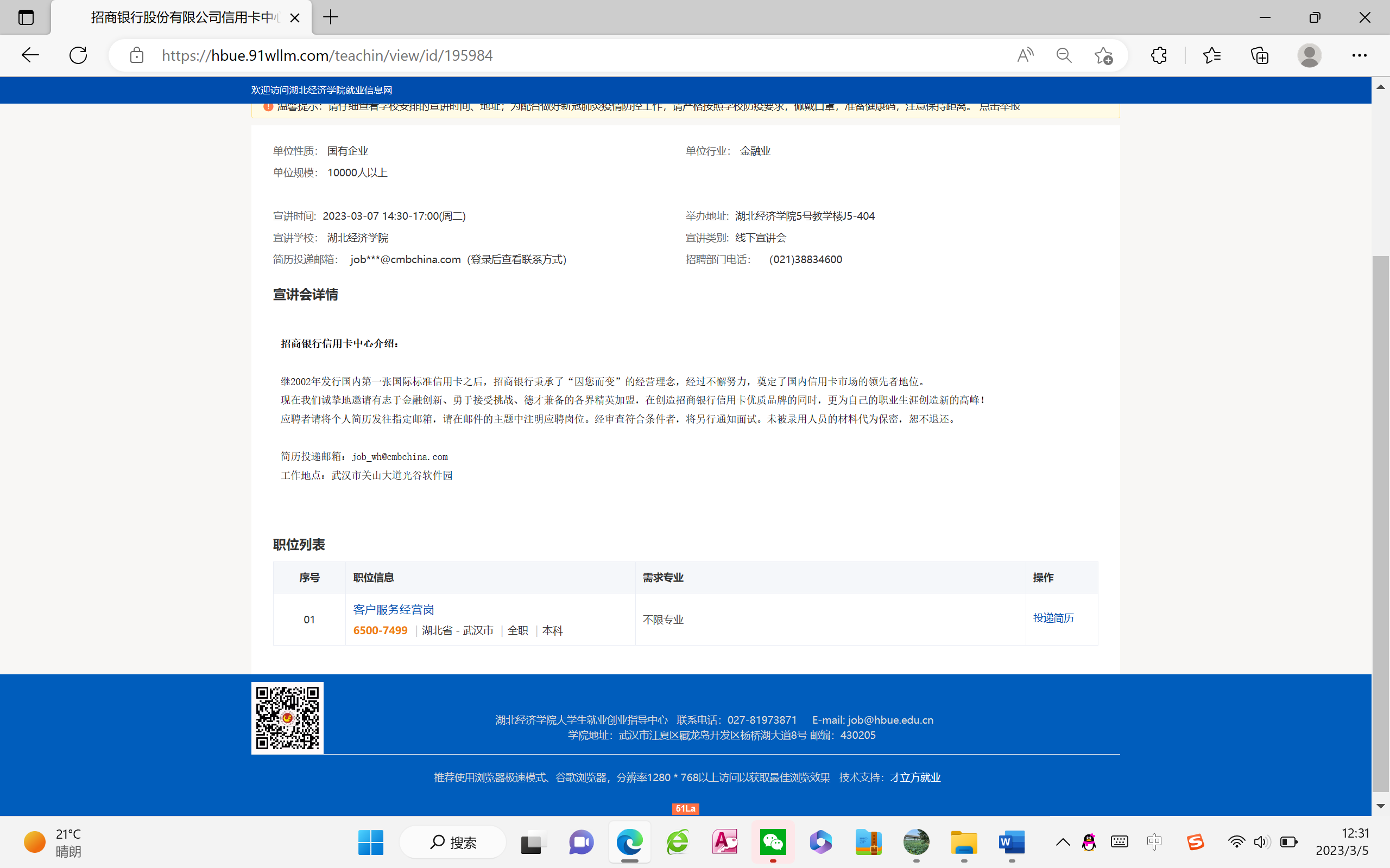 现在我们诚挚地邀请有志于金融创新、勇于接受挑战、德才兼备的各界精英加盟,在创造招商银行信用卡优质品牌的同时,更为自己的职业生涯创造新的高峰!