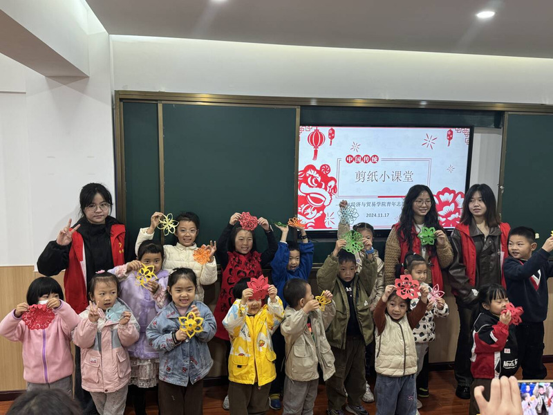 活动尾声,小朋友们举着自己心满意足的剪纸佳作,如捧着稀世珍宝般,簇拥在青协志愿者们身旁,绽放出纯真无邪的笑容。快门按下,那一张张洋溢着幸福与自豪的笑脸被定格,成为这场文化传承之旅最美的注脚。通过动手实践,小朋友们不仅学会了剪纸技巧,更深刻感受到了中国传统文化博大精深和独特魅力。