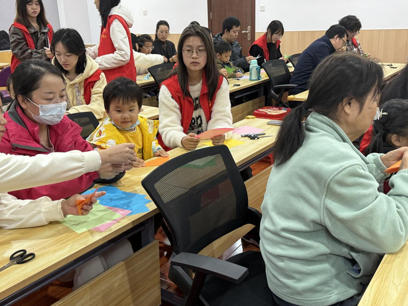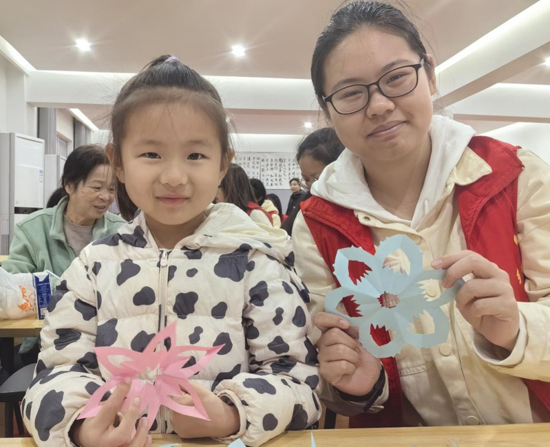 在志愿者们耐心且专业的辅导下,现场一片热火朝天。小朋友们稚嫩的小手紧握着剪刀,小心翼翼又充满热情地雕琢着手中的彩纸,家长们也被这浓厚氛围感染,纷纷加入其中。一时间,纸屑纷飞,如彩蝶蹁跹,一幅幅五彩斑斓、独具匠心的剪纸作品应运而生,它们或精致细腻,或拙朴可爱,却都凝聚着大家对传统艺术的热爱与敬意。