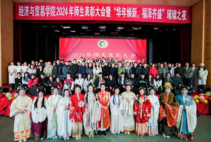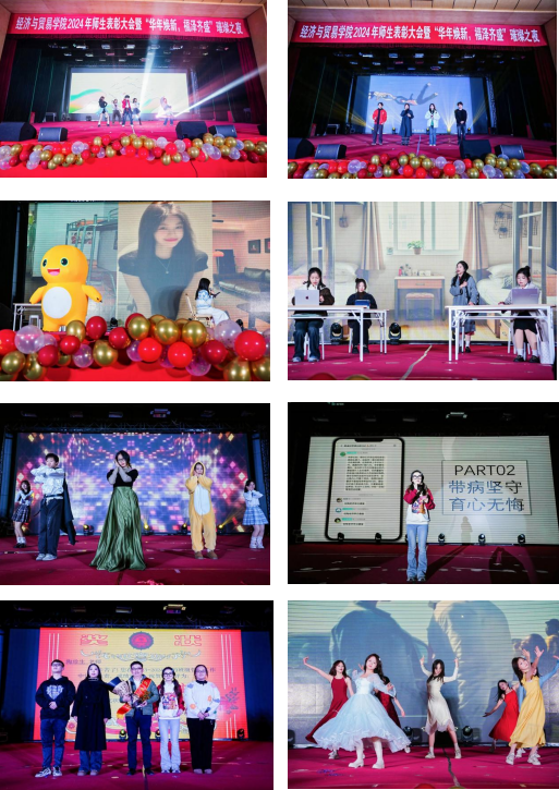 本网讯(通讯员黄颖萱)12月22日晚,院于大学生活动中心一号报告厅盛大举行2024年师生表彰大会暨“华年焕新,福泽齐盛”璀璨之夜晚会学院党委书记蒋琼、党委副书记丁升、副院长乔长涛、副院长马玉霞系主任等学院领导,2007至2019届校友代表、各年级班主任、辅导员老师及全院学生欢聚一堂,表彰先进,喜迎新年