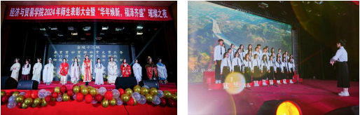 晚会共分为三个篇章“忆·往昔时光”“赴·当下征程”“逐·明日绮梦”在院舞蹈队燃爆全场的《舞动青春》中拉开帷幕,院声乐队带来的歌曲串烧《美好事物》将经典与时尚、动感与深情完美融合,带领同学回顾了成长青春里的喜悦与伤痛。经济2243班带来的情景剧《湖经奶龙成长记》以可爱搞怪的方式警示同学们网恋要谨慎、体侧代跑要不得,国贸2341班的情景剧《谁说这AI不好啊》在欢声笑语中引发同学们对人工智能的辩证思考,经济2241班在《夸夸我的班主任》节目中讲述了班级同学与“地表最强班主任”的“爱恨交织”,现场师生热泪盈眶。经济2441班的歌舞节目《达拉崩吧》及国贸2441班的舞蹈《Another Day of Sun》传递出浓浓的青春活力。由我院经济2242班陆璐领衔指导、多个学院学生共同参演的汉服秀《一梦红楼》则将大家带到那个风华绝代、才子佳人辈出的璀璨时代,感受传统文化的魅力。伴随着大合唱《最初的梦想》的悠扬旋律,晚会落下帷幕。本次晚会主题鲜明,形式新颖,通过丰富多彩的节目,为同学们打造了一节沉浸式的思政课堂,通过师长引领、朋辈示范,凝聚了经贸学院的榜样力量。