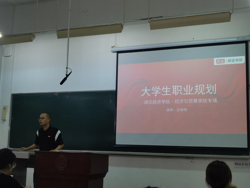 本网讯(通讯员左寅生)为帮助我院2022级国际经济与贸易专业学生了解就业现状、明确个人发展方向,11月17日晚,我院于J1-101开展了职业规划专题讲座,本次讲座由高途教育科技集团大学生业务武汉学校校长王瑶明主讲。
