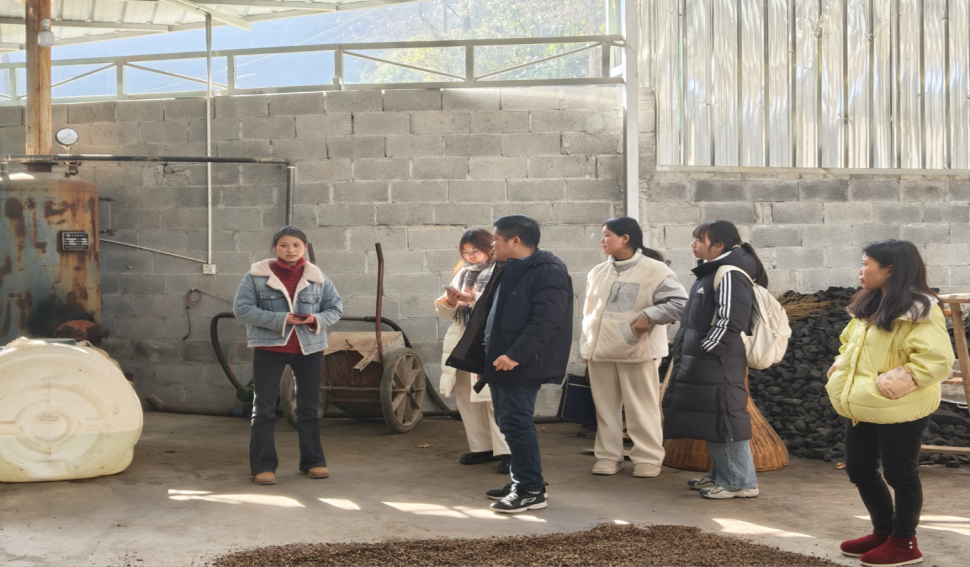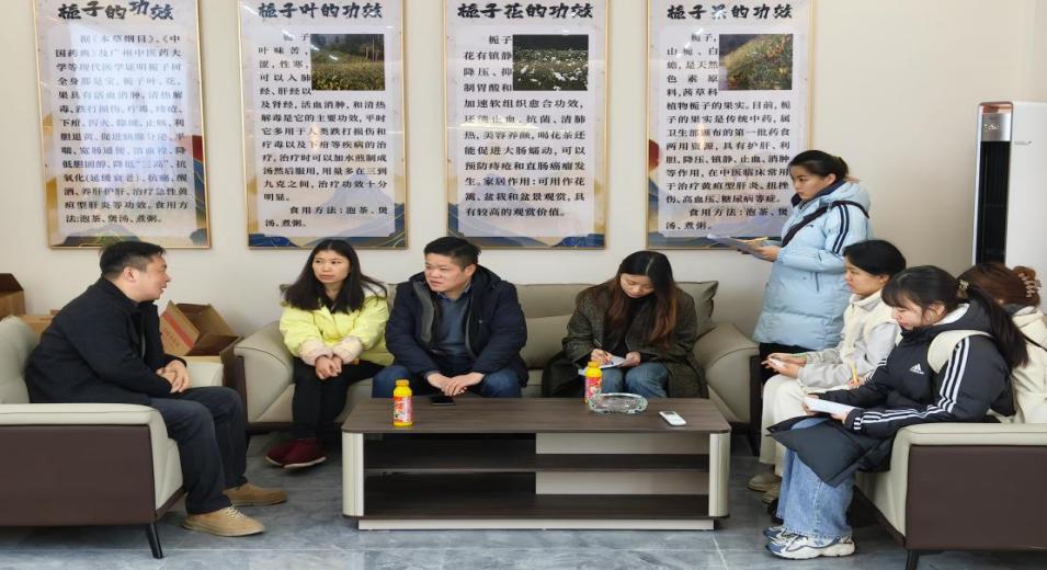 本网讯(通讯员:成善林,陈仕林)在乡村振兴战略大背景下,宜昌长阳县积极推动栀子产业化发展,不断深化拓展产业链,逐步构建起产业生态体系。为探寻栀子特色产业链发展新路径,2025 年 1 月 17 日,太阳成集团tyc539智慧金福·栀子产业调研队在太阳成集团tyc539商务经济学系教师党支部书记、系主任叶洪涛老师的带领下,参访都镇湾金福村群益合作社和嵩水坪村栀果加工企业。
