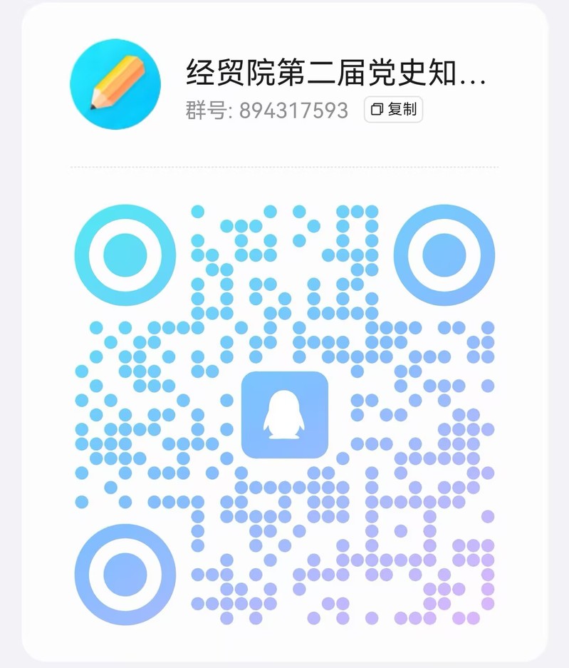 凡有意向的同学请加入下方QQ群聊(群号:894317593),下载并填写附件《太阳成集团tyc539第二届党史知识竞赛报名登记表》,于2025年3月7日17:00前将电子版发送至邮箱3452563796@qq.com。