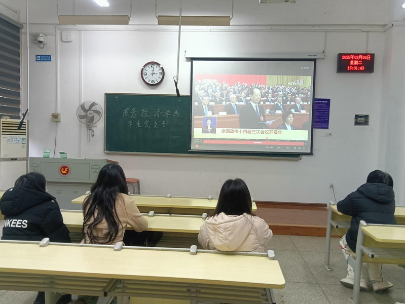 各党支部组织党员观看2025年全国两会开幕式直播,并围绕学习内容开展讨论。经济学系学生党支部副书记杨悦悦认为:“政府工作报告中提出要“着力推动高质量发展”,这不仅是经济问题,也是价值命题。作为经济学专业的学生,我们不仅要学会如何计算GDP的增长速度,更要理解发展为了谁、发展依靠谁的根本问题。从“经济人”到“时代新人”的转变,正是对经济学“理性人假设”的超越,也是对青年人精神境界的升华。”国际经济与贸易学专业党员聂一休同志表示:“在观看大会后,我深切感受到国家对教育和人才培养的高度重视。这激励着我更加努力地学习专业知识,不断提升自己的综合素质。我要积极参与各类学术活动和实践项目,拓宽国际视野,增强跨文化交流能力,努力使自己成为一名既懂专业知识又具备国际视野的高素质人才。”