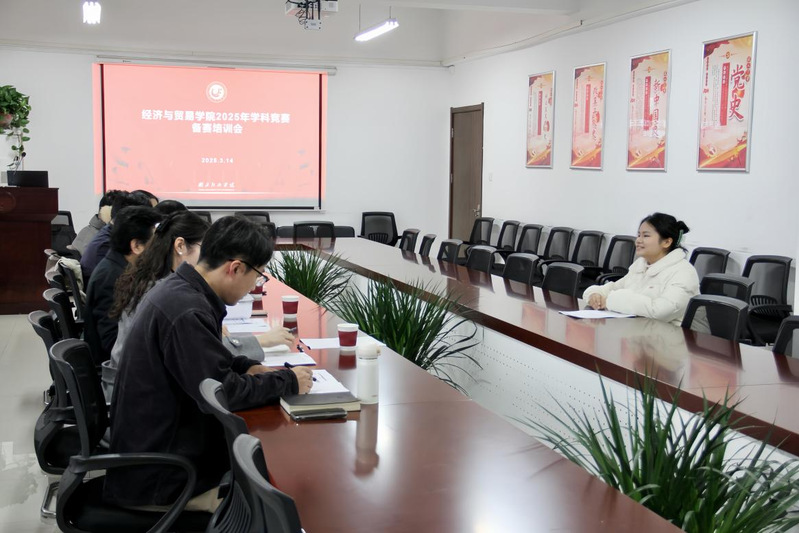 本网讯 为激发学生参与学科竞赛热情,赋能学科竞赛提质增效,3月14日,学院在503会议室组织召开了2025年学科竞赛备赛指导会。学院党委副书记丁升,经济学系高洁教授,商务经济学系张全红教授、田野副教授等评委老师与备赛学生团队共同围绕赛事选题、案例解析、实战指导等核心问题展开深度交流。