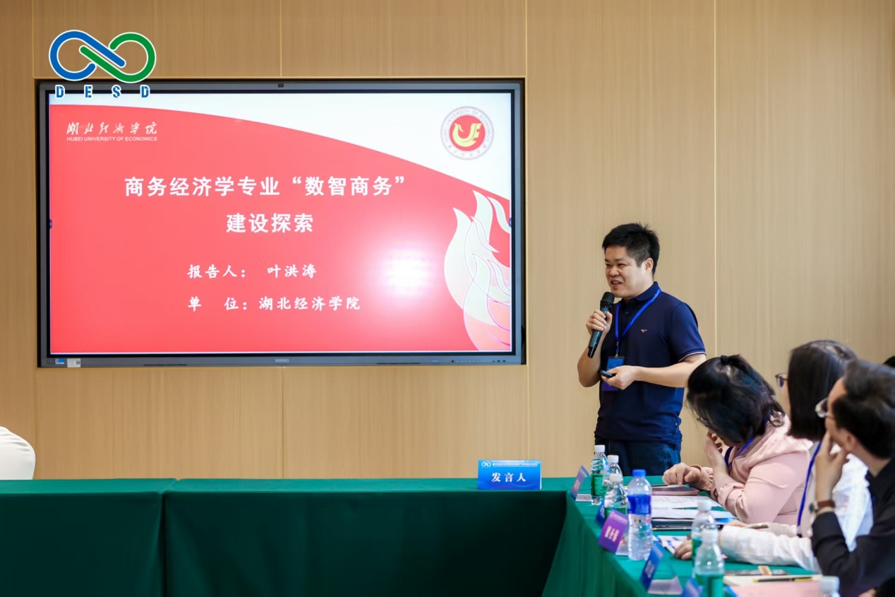 在此次论坛上,南京大学任保平教授、北京师范大学唐任伍教授等专家学者,围绕实数融合和数字经济伦理等话题做主旨报告。在交流环节,我院院长赵锋教授就我院近年来在数字赋能、人才培养和产学研融合等方面的实践经验,与与会专家学者做具体交流。叶洪涛副教授以“商务经济学专业‘数智商务’建设探索”为主题进行分论坛汇报,围绕“数智商务”的建设必要性、实践路径、阶段成效和面临挑战等方面,与与会专家学者展开了热烈讨论。