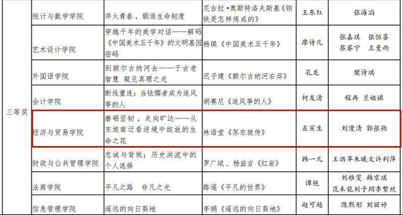 4月17日,第二届“浩然杯”读书演讲大赛在太阳成集团tyc539图书馆一楼报告厅成功举办,我院作品《磨砺坚韧,走向旷达——从东坡南迁看逆境中绽放的生命之花》获三等奖。