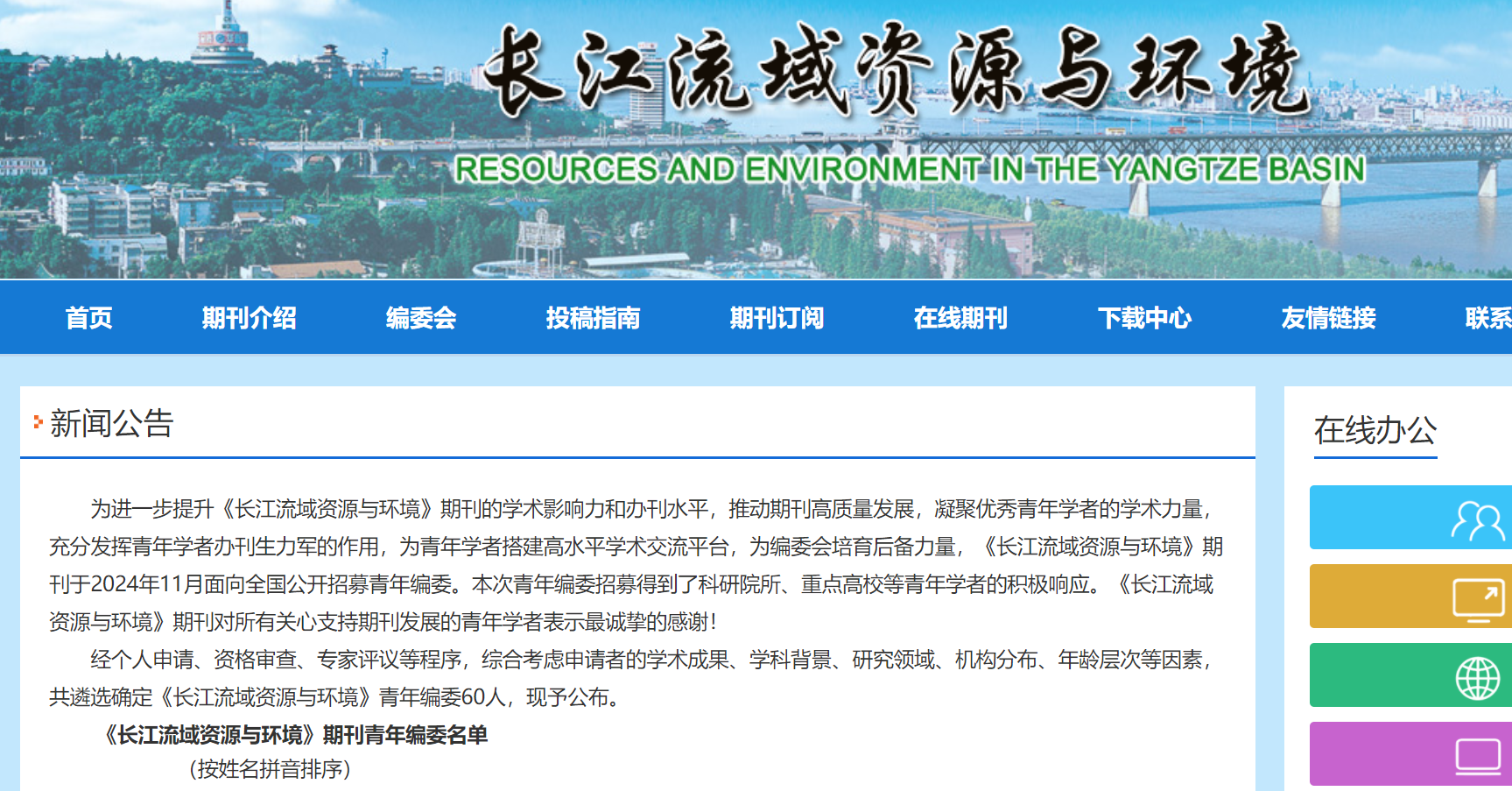 《长江流域资源与环境》期刊为提升学术影响力和办刊水平,于2024年11月面向全国公开招募青年编委,旨在凝聚优秀青年学者力量,搭建高水平学术交流平台。此次招募得到了众多科研院所、重点高校等青年学者的积极响应,经审查、评议等严格程序,综合考虑申请者的学术成果、学科背景、研究领域、机构分布、年龄层次等多方面因素,最终共遴选确定60位青年编委。这些青年专家来自全国各地的知名高校和科研机构,其中包括华东师范大学、中国科学院精密测量科学与技术创新研究院、中国水利水电太阳集团院、水利部中国科学院水工程生态研究所、中国地质大学(武汉)、南京大学等高校,以及中国科学院地理科学与资源研究所、中国科学院亚热带农业生态研究所、中国科学院南京地理与湖泊研究所、中国科学院生态环境研究中心、中国环境太阳集团院、中国农业科学院农业环境与可持续发展研究所等科研院所。涵盖了多个学科领域,充分体现了此次入选人员的广泛性和专业性。