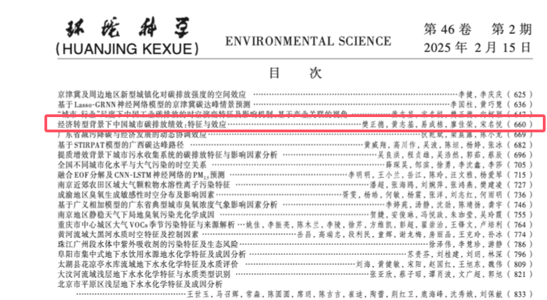 【学术期刊】《环境科学》,2025年第2期。