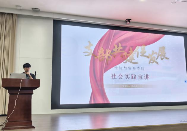 随后,三支优秀社会实践团队依次上台分享心得体会。支部共建促发展服务团重点展示了学院党支部与地方党支部互促共建,以志愿服务赋能乡村振兴、助力地方发展的实践过程;“大梦想家”团队向同学们讲述了团队关爱山区留守儿童、践行经院“济民”精神的支教故事;黄梅挑花文化遗产小分队为同学们讲解了将社会实践内容转化为科研立项及大学生创新创业项目的技巧。活动最后,学院团委书记左寅生老师介绍了今年暑期社会实践工作的总体安排,梳理了实践工作的时间节点,并对同学们进行鼓励和动员。