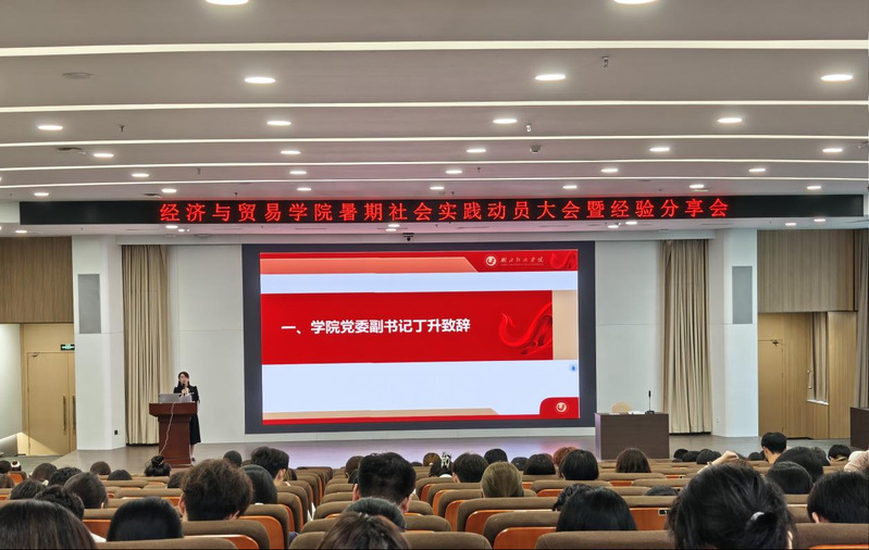 活动伊始,学院党委副书记丁升以“实践育人,青春建功”为主题,回顾了学院在志愿服务、产业调研、创新创业等社会实践领域多年来的丰硕成果,并向在场学生阐述了社会实践活动对个人成长及社会发展的深远意义。她强调,社会实践是高校学生将理论知识应用于实际、塑造品格与提升能力的重要途径,期望同学们能在实践中洞察社会现状、在挑战中锻造坚强能力,展现经院学子的责任感与使命感。