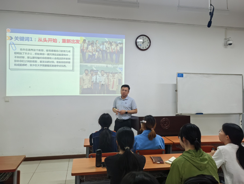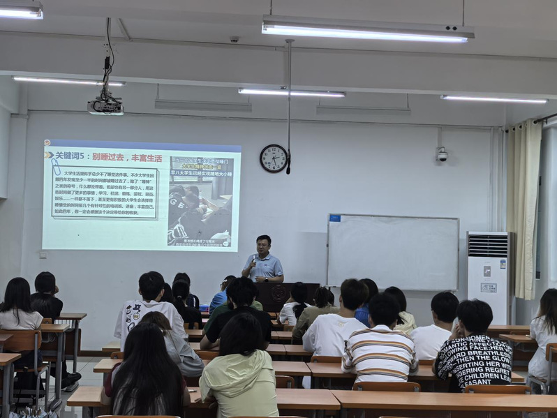 靳老师指出,大学是人生的新篇章,他鼓励同学们以积极的心态迎接挑战,并用湖北工业大学学生成功考入斯坦福大学的实例,生动诠释了大学四年的无限潜力和机遇。在人际关系方面,靳老师提醒同学们用心经营室友关系,构建和谐寝室氛围。学业规划方面,要对专业负责,明确考研、出国或就业目标并尽早准备。同时,靳老师也鼓励同学们勇于走出课堂,积极参与学科竞赛、社团活动、社会实践等,充分利用图书馆资源,不断充实自己,实现学习与生活的良好平衡。