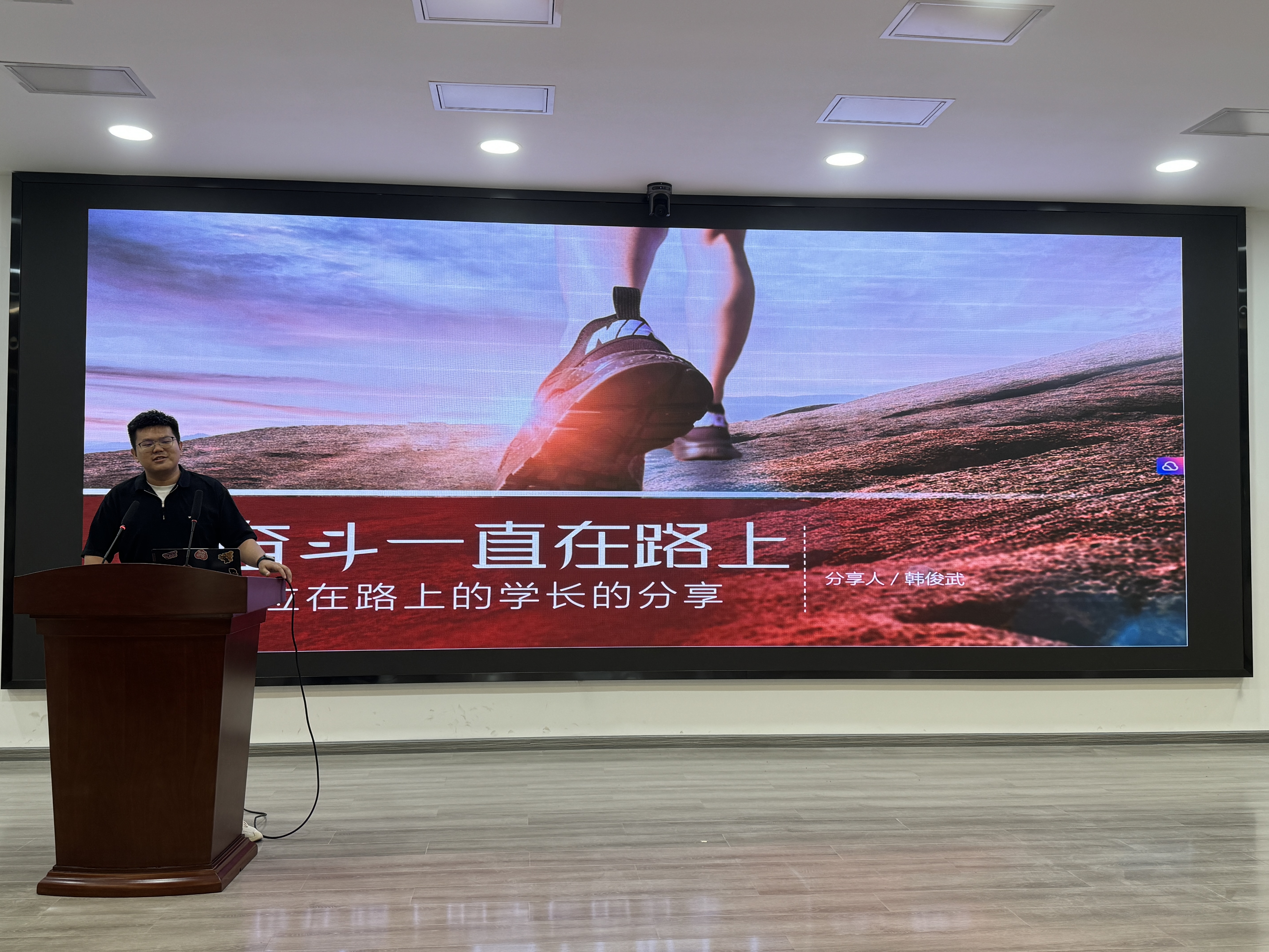 韩俊武校友以“保持乐观,奋斗不止”为题,从自身求学及在立白企业集团有限公司工作经历出发,为同学们分享了自己不断拼搏、积极向上的成功经历,重点强调了职业规划的重要性,介绍了零售行业的前沿情况,并提醒同学们要保持健康身体、珍惜大学时光、合理利用学校资源,以持续学习的心态和永不言弃的精神面对生活和工作中的机遇与挑战,不断在行动中迭代优化,更好地实现自我价值。