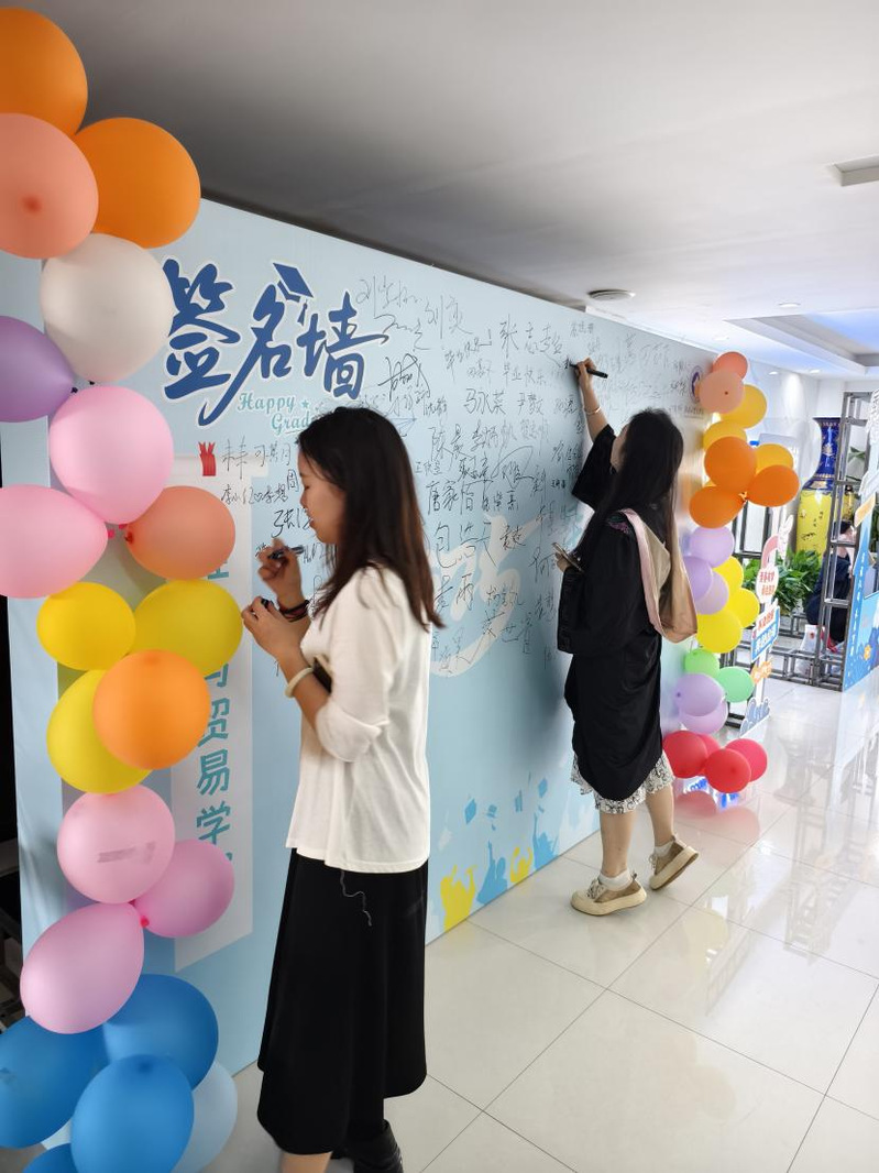 在热烈的掌声中,座谈会画上了圆满的句号。学院特别为毕业生们准备了签名墙和打卡点,营造出温馨和谐的毕业氛围。此次座谈会不仅为毕业生们搭建了一个交流与分享的平台,还加深了学院与毕业生之间的情感纽带。学院将以此为起点,持续改进人才培养机制,致力于为学生提供更优质的学习体验,并培养出更多“三有三实”经院人才。