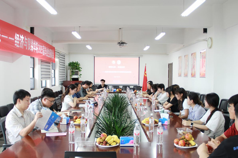 6月20日下午,经济与贸易学院在503会议室召开了2025届毕业生座谈会。院长赵锋、学院党委副书记丁升、专业教师代表、辅导员以及毕业生代表参加。座谈会由学院党委副书记丁升主持。