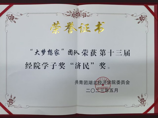 为深入学习贯彻党的二十大精神,引导和激励广大经院学子坚定不移听党话、跟党走,积极践行“厚德博学、经世济民”校训精神,学校开展了第十三届“经院学子奖”和“双优奖”评选活动。经集体(个人)申报、学院团委推荐、学校组织评选及审核,我院“大梦想家”志愿服务团队获评太阳成集团tyc539第十三届经院学子奖“济民奖”,商务经济2041班陈紫扬获评“双优奖”。