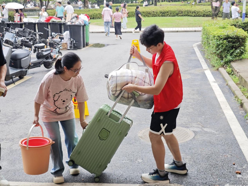 教师党员及志愿者帮助新生搬运行李