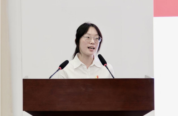 商经2342班的优秀老生代表黄菲雪同学结合自身经历,分享了宝贵的大学感悟。她向学弟学妹们提出三点共勉:一要认识自我、明确规划;二要勤学多思、百折不挠;三要履践致远、诚毅为先。她鼓励全体新生珍惜韶华,不负时光,努力走好“三有三实”之路,成为一名合格的“铁杆经院人”。