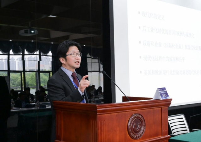 英国伦敦大学皇家霍洛威学院谭辉教授报告主题为“西方后工业化时代的现代化——基于英国和欧洲的观察”,他从现代化的国际视野出发,介绍了西方后工业化时代的现代化发展模式,及其在中国全面推进现代化进程中的启示。