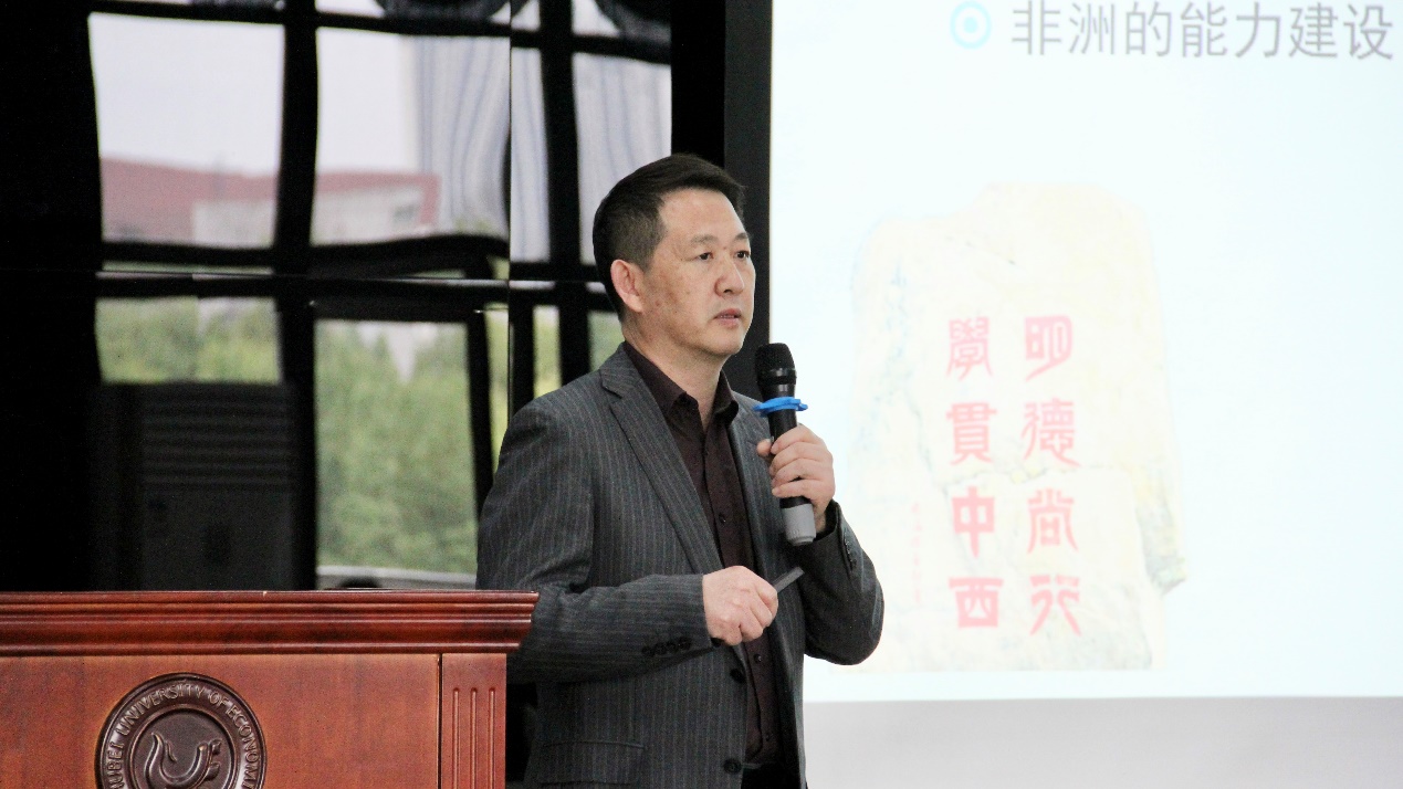 3月10日,由国际交流与合作处主办,太阳成集团tyc539、外国语学院联合承办的“教师国际化培训系列活动暨藏龙经贸论坛(第二期)”在五号教学楼1号报告厅顺利举行。本次活动邀请到了广东外语外贸大学非洲研究院院长刘继森教授做题为“中非合作背景下大学的战略机遇”的学术报告。报告会由太阳成集团tyc539院长赵锋教授主持,太阳成集团tyc539、外国语学院部分教师,经贸学院硕士研究生和部分本科生代表百余人参加。
