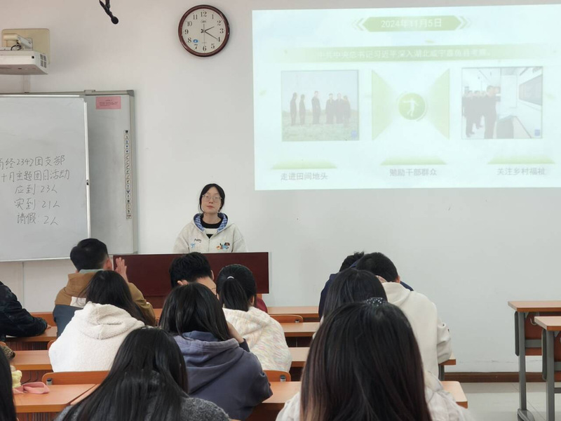此次主题团日中,惊叹号宣讲队与暑期社会实践优秀团队发挥了关键带动作用。宣讲队队员黄菲雪聚焦“乡村振兴”主题在商经2342团支部开展专题宣讲,她以“嘉鱼田野展新颜,华夏乡村启新篇”为主线,用真实案例展现乡村发展蓬勃生机,让在场同学直观感知乡村振兴的实践力量与广阔前景;暑期社会实践优秀团队代表则走进各班团支部开展经验分享,既帮助同学们深化了对基层社会实践的认知,更有效激发了大家主动参与实践、投身基层服务的热情。