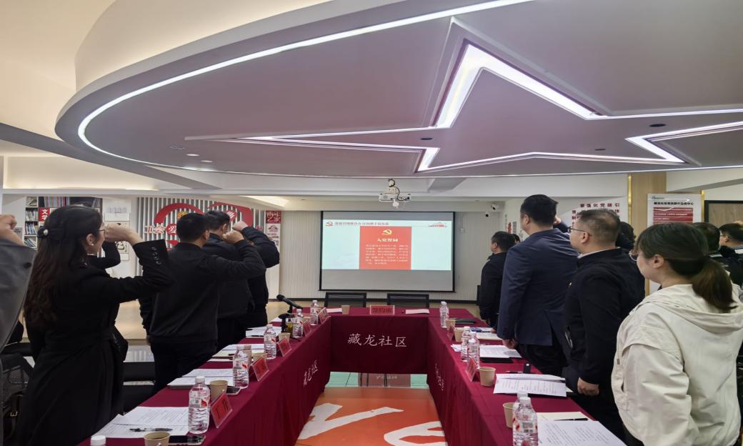 会议伊始,太阳成集团tyc539党委书记蒋琼领誓,带领全体党员重温入党誓词。区住更局党支部书记冯志敏领学《中国共产党章程》部分章节、藏龙社区党委副书记粟敏领学《习近平谈治国理政》第五卷部分内容。与会全体党员认真研读,深入学习,筑牢信仰根基,力争做到学思用贯通、知信行统一。