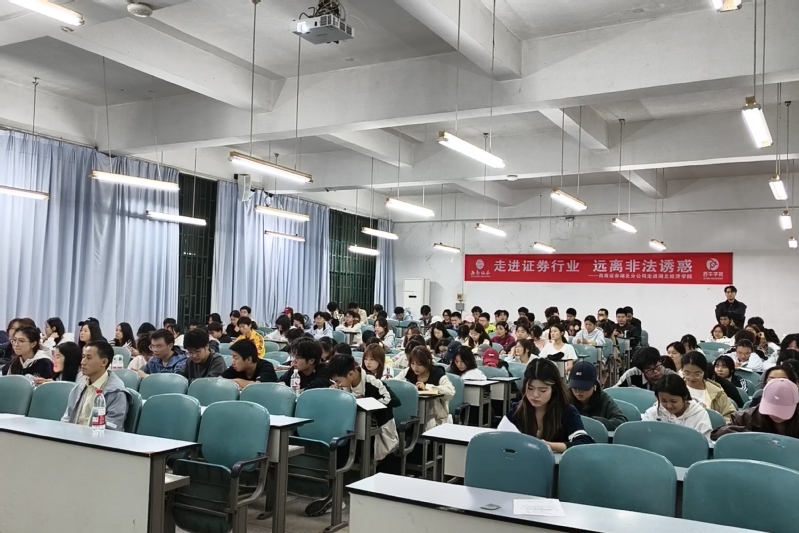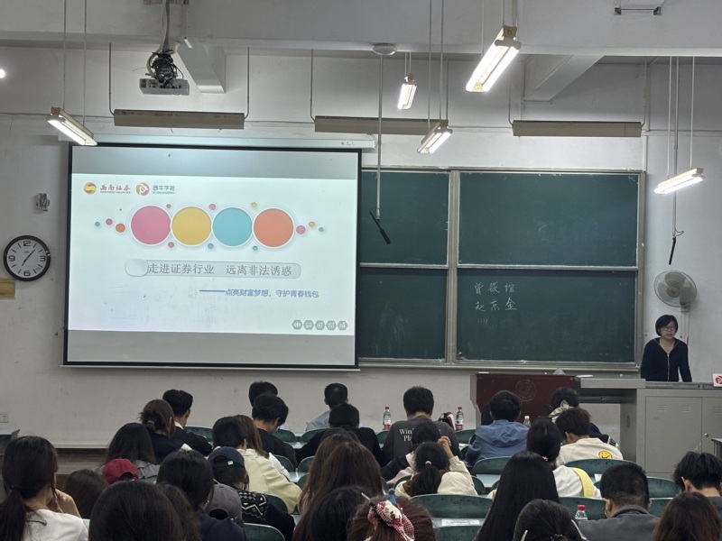 为搭建校企沟通桥梁,帮助25级经济学学子洞悉金融行业前沿动态,提升金融安全意识,11月2日晚,我院特邀国内知名券商西南证券湖北分公司开展“走进证券行业 远离非法诱惑”专题宣讲会。