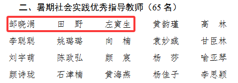 10月28日,学校团委发文表彰2025年暑期社会实践活动优秀集体、优秀个人及优秀成果。我院1支团队荣获国家级专项;3支团队获校级表彰,其中2支团队荣获校级二等奖、1支团队荣获校级三等奖;1篇调研报告获暑期社会实践优秀成果三等奖;3名教师获评“暑期社会实践优秀指导老师”,1名学生获评暑期社会实践标兵,12名学生获评暑期社会实践积极分子。
