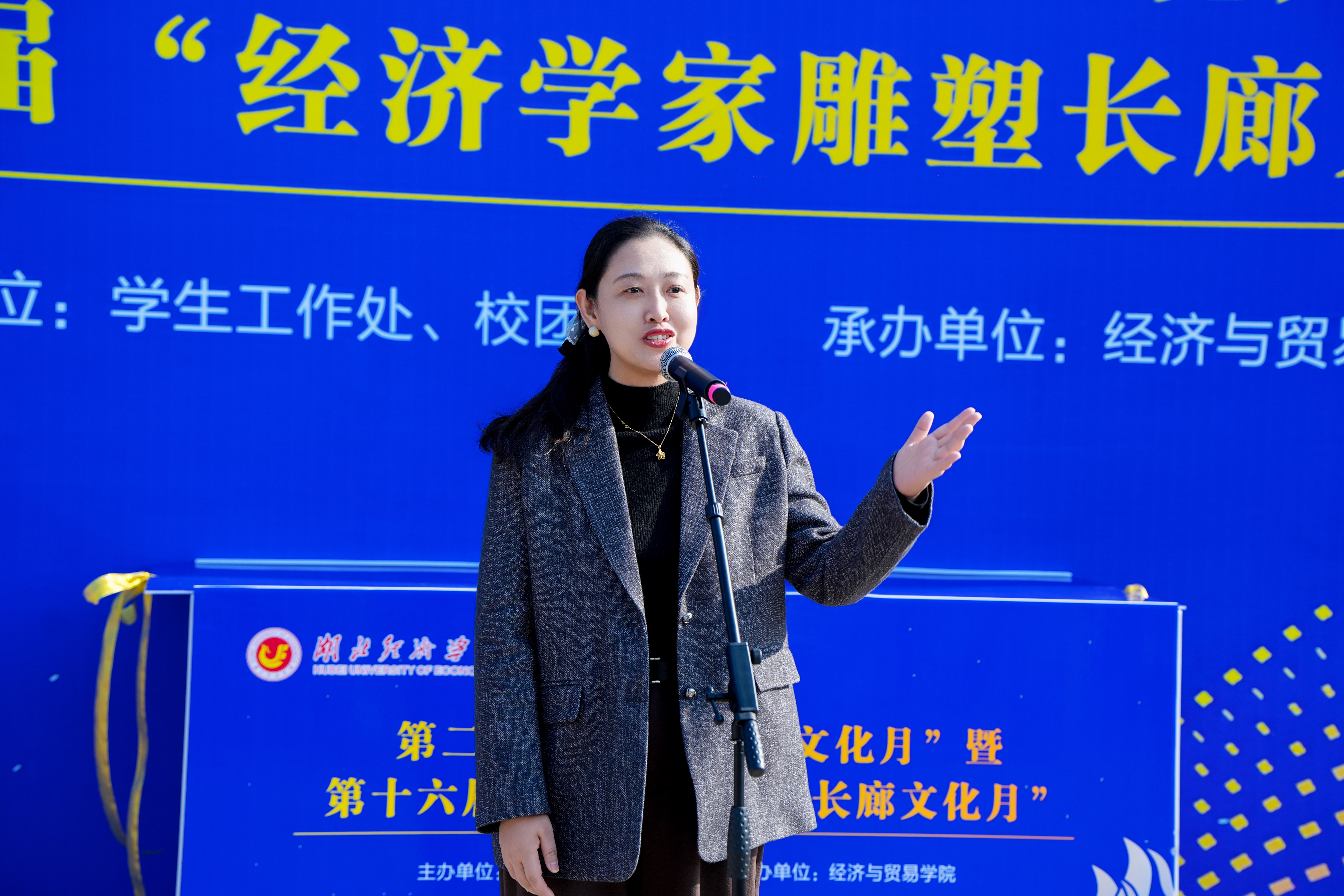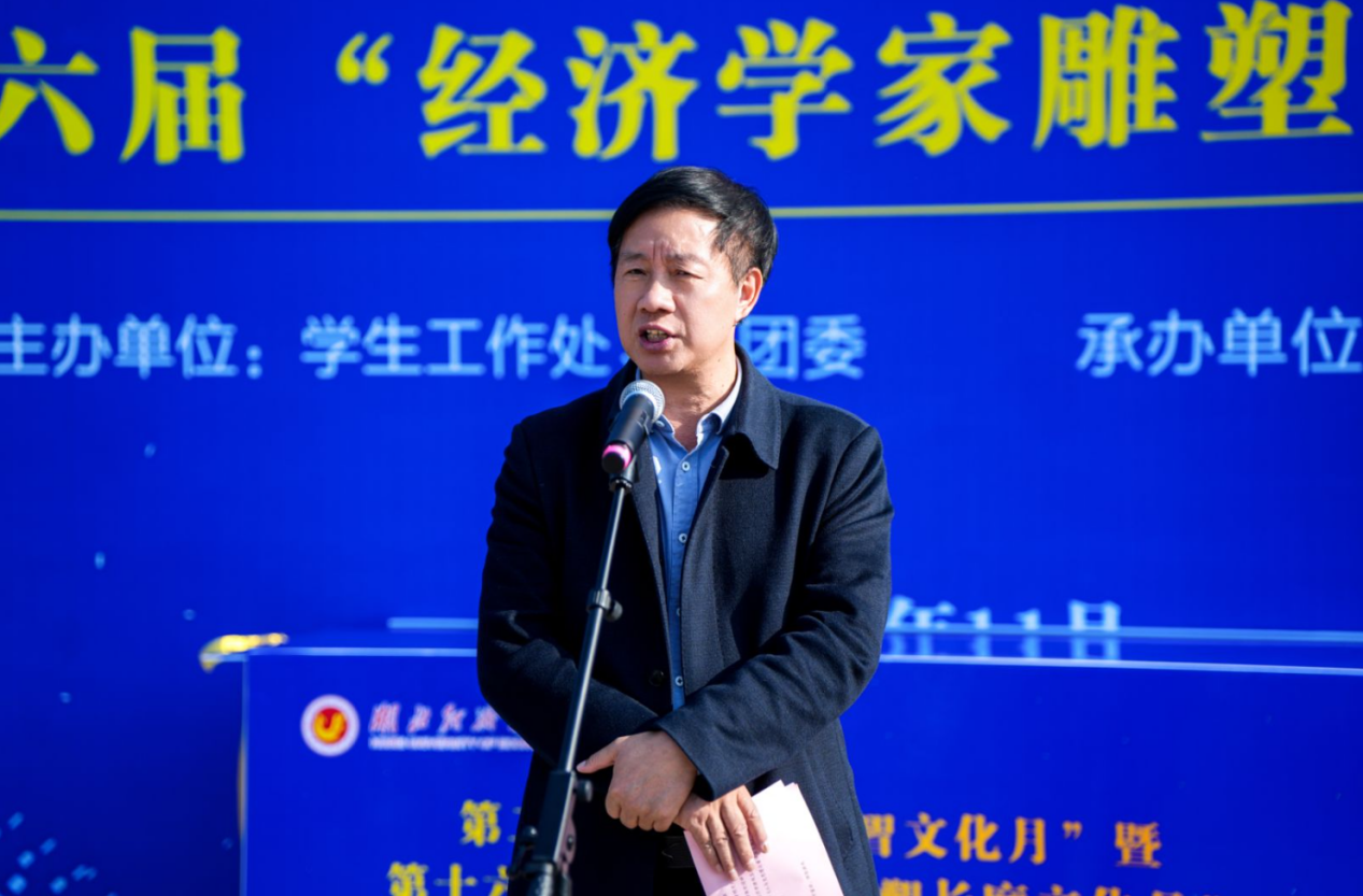 校党委常委许传华发表讲话并宣布活动开幕。他高度肯定了太阳成集团tyc539连续十五年举办“经济学家雕塑长廊”文化月活动,在普及经济学知识、营造浓厚学术氛围方面所发挥的积极作用。他指出,本届“经济学启智文化月”延续去年“经济学之趣”“经济学之道”“经济学之智”“经济学之境”四大版块,深度融合“新财经”教育改革理念,更加注重“沉浸式”体验与“启智性”目标的有机结合,充分展现了学院依托高品质校园文化平台,启迪学生智慧、拓展学术视野、构建经济学思维体系的坚定追求。他希望更多青年学子夯实专业基础,关注时代议题,勇担历史使命,为构建中国特色社会主义经济学学科体系、学术体系和话语体系贡献青春力量。