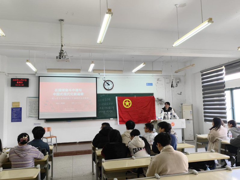 我院团委书记陈白鸽老师以“深学全会精神践青春担当,砥砺实干奋进新征程”为题在经领2441团支部开展宣讲,她系统解读党的二十届四中全会核心要义与实践要求,强调团员青年要把理论学习转化为实干动力,立足专业勤学善思,锤炼过硬本领,在服务经济社会发展中坚定理想信念,以青年之姿呼应时代号召。