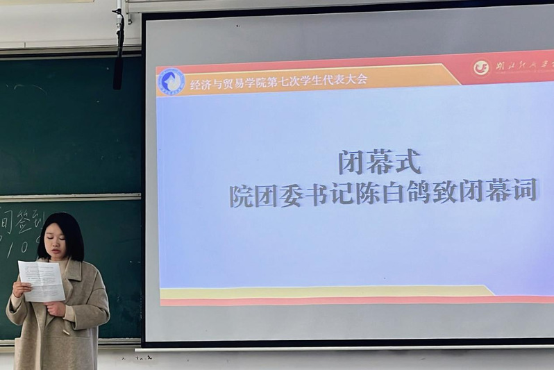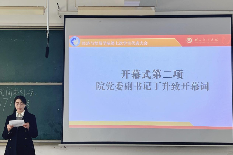 校学生会主席毛静怡在致辞中肯定了学院团委学生会在普及经济学知识、营造学术氛围等方面的贡献,并表示校学生会将一如既往地支持学院团委学生会工作,期待与新一届学生会加强协作,共同服务同学成长,助力学校发展。