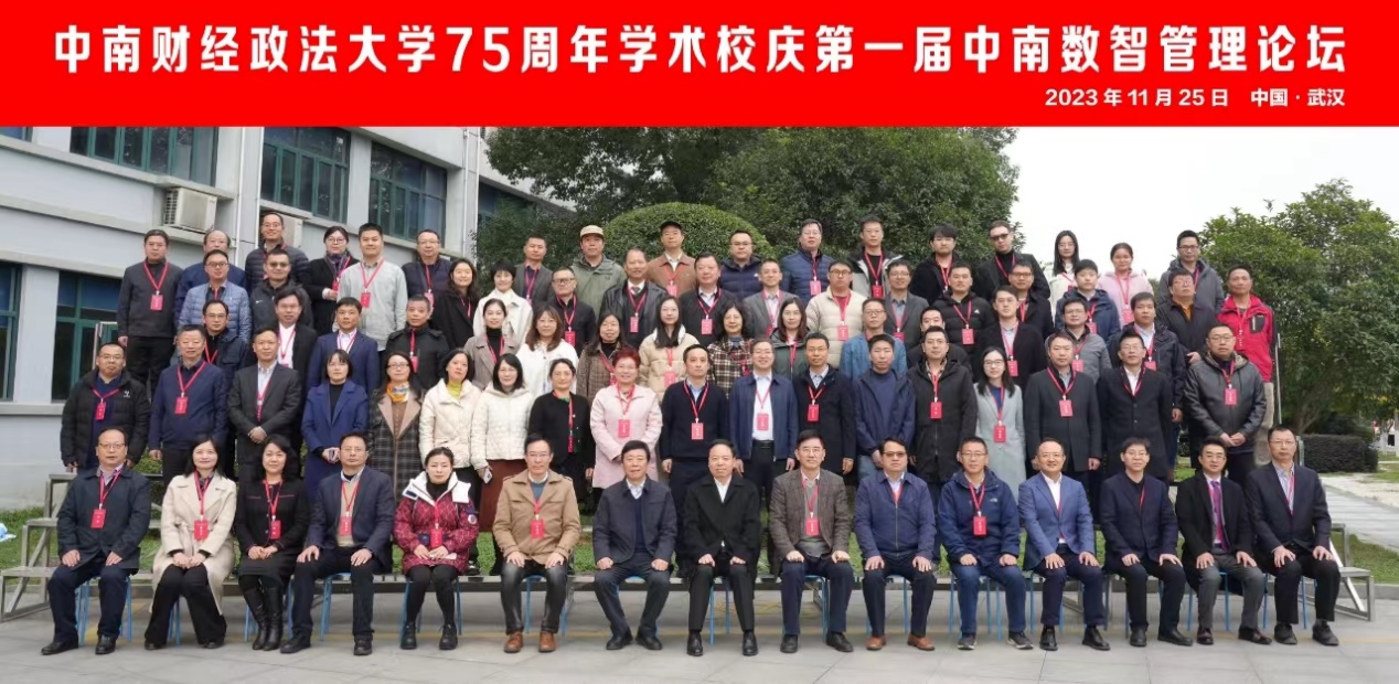 2023年11月25日,由中南财经政法大学信息工程学院承办的中南财经政法大学75周年学术校庆暨第一届中南数智管理论坛在中南财经政法大学南湖校区成功举办。全国政协常委、湖北省人大常委会副主任杨云彦,国家管理科学与工程类专业教学指导委员会原副主任、中国系统工程学会副理事长、国防科技大学谭跃进教授,国家管理科学与工程类专业教学指导委员会委员、昆明理工大学秦开大教授等专家和领导共100余人出席了本次论坛。
