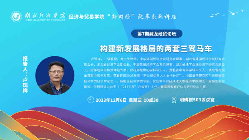 【讲座预告】第7期藏龙经贸论坛:构建新发展格局的两套三架马车