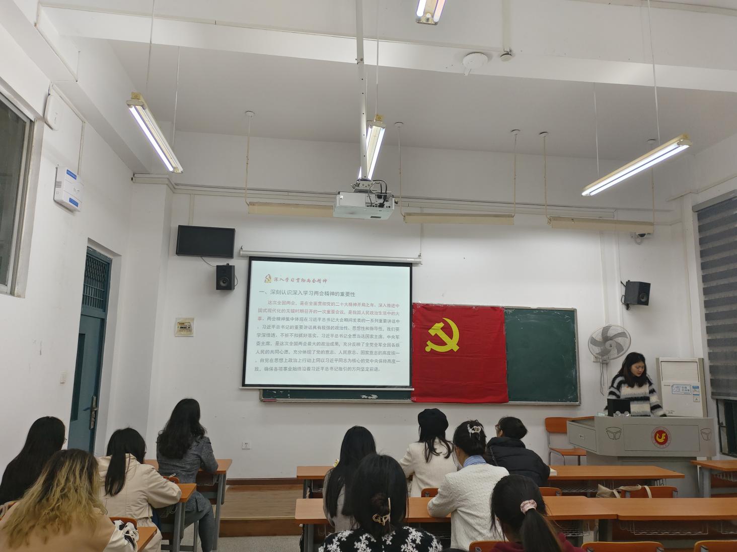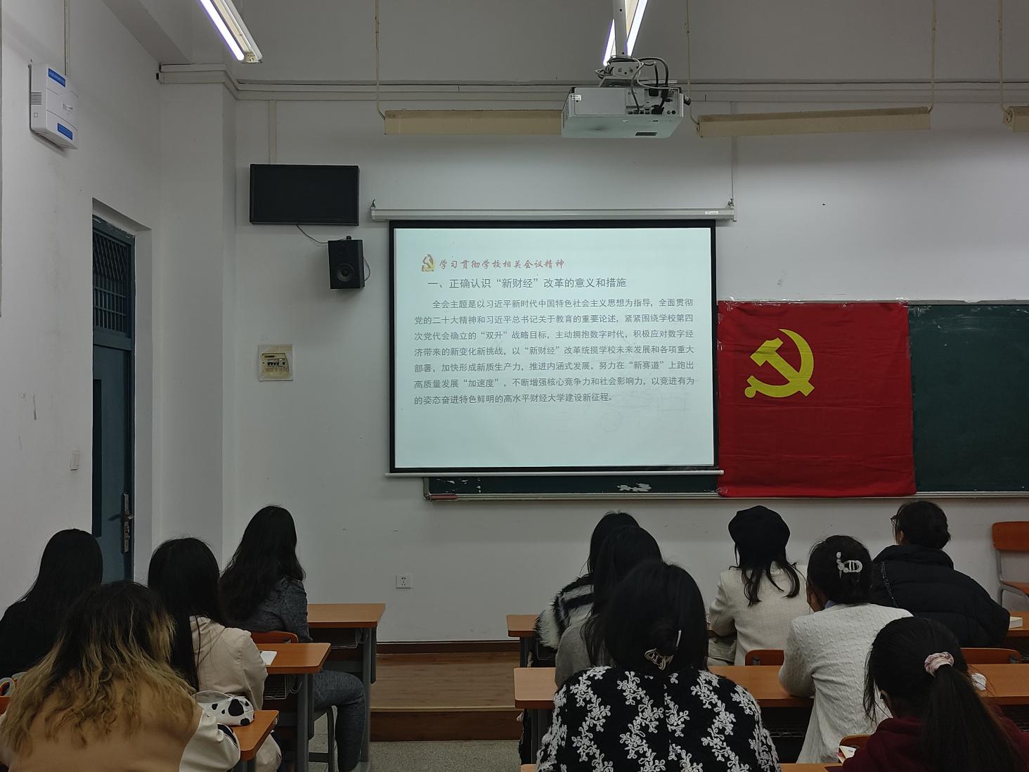 会上,全体党员同志一齐学习了两会精神、学校党委四届五次全会精神和新学期中层干部会议精神,并观看了系列视频。祝琴老师总结强调,要坚定不移用习近平新时代中国特色社会主义思想统一思想、统一意志、统一行动,坚定不移贯彻习近平总书记重要讲话精神和党中央决策部署,始终胸怀“两个大局”、心怀“国之大者”、牢记“三个务必”。全面贯彻党的二十大精神和习近平总书记关于教育的重要论述,紧紧围绕学校第四次党代会确立的“双升”战略目标,主动拥抱数字时代,积极应对数字经济带来的新变化新挑战,以“新财经”改革统揽学校未来发展和各项重大部署,加快形成新质生产力,推进内涵式发展。
