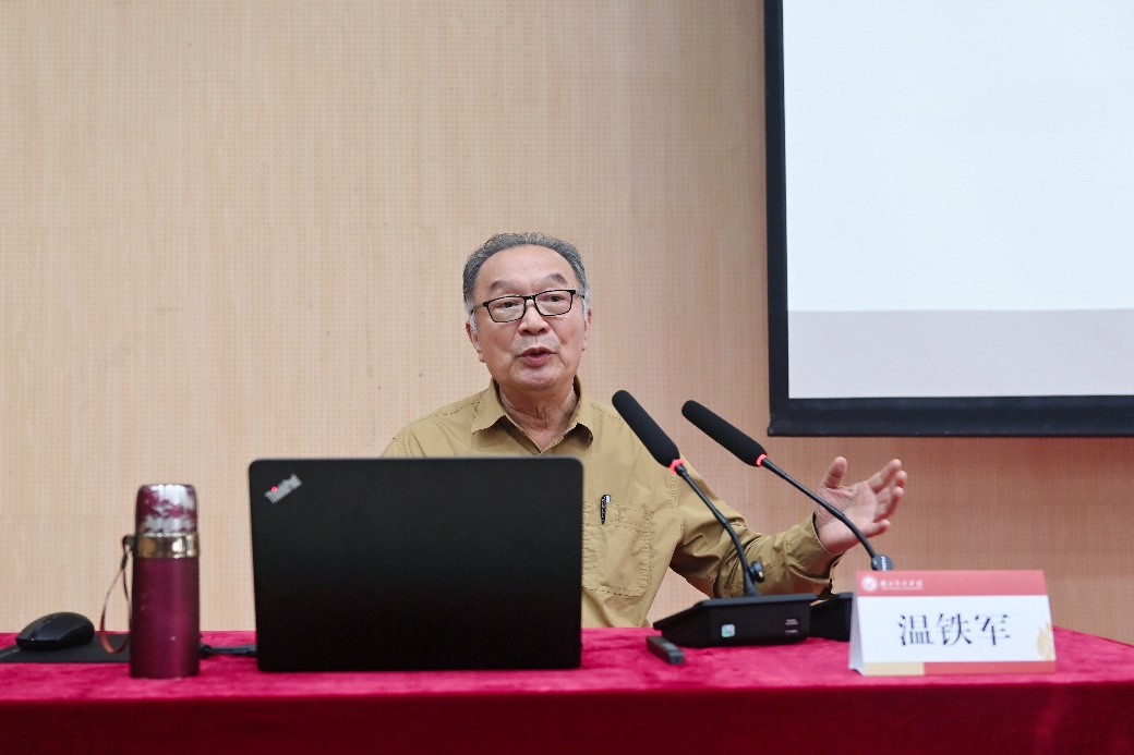 报告后,温铁军教授和老师同学们热烈互动,就去依附、美国霸权衰落、话语体系等问题,与在座师生进行了深入讨论。