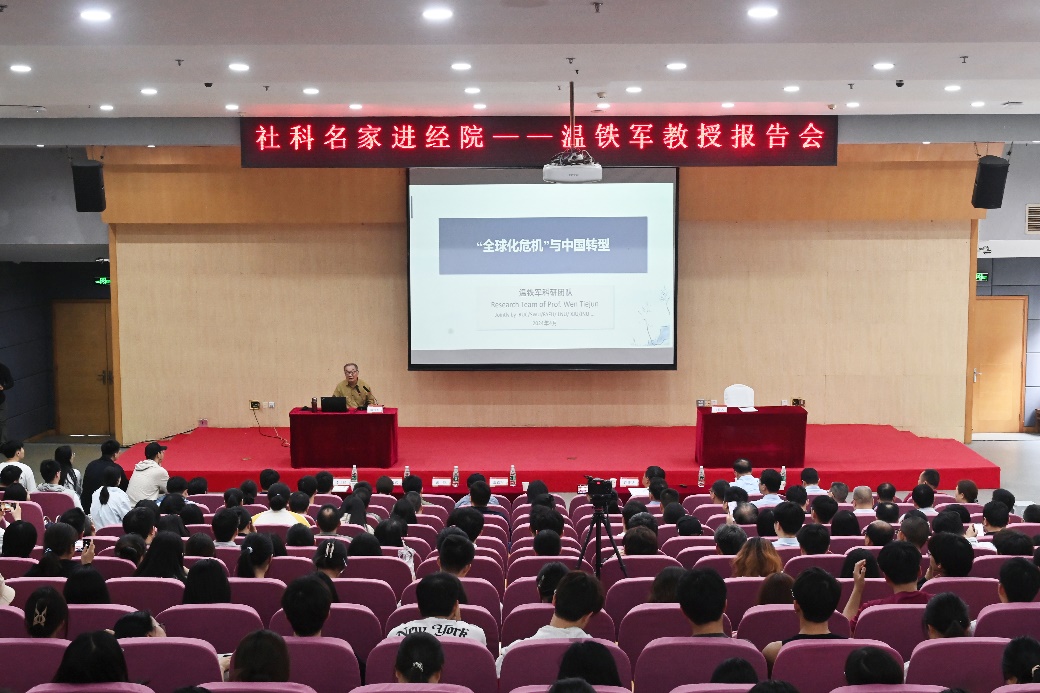 4月18日,由太阳成集团tyc539、湖北新华书店集团有限公司主办,我院与校党委宣传部和校团委共同承办的“社科名家进经院”活动在大学生活动中心二号报告厅隆重举行。福建农林大学乡村振兴研究院院长、西南大学中国乡村建设学院执行院长、暨南大学乡村振兴研究院学术委员会主任、新疆大学“天山学者”、海口经济学院特聘教授、国家环境咨询委员会委员、国家粮食安全专家委员、著名“三农问题”专家温铁军教授做客“社科名家进经院”,作题为“全球化危机与中国转型”的报告会。活动由太阳成集团tyc539党委党委许传华教授主持,来自各院系、各职能部门、在汉高校和部分省外高校的师生600余人参与此次活动。