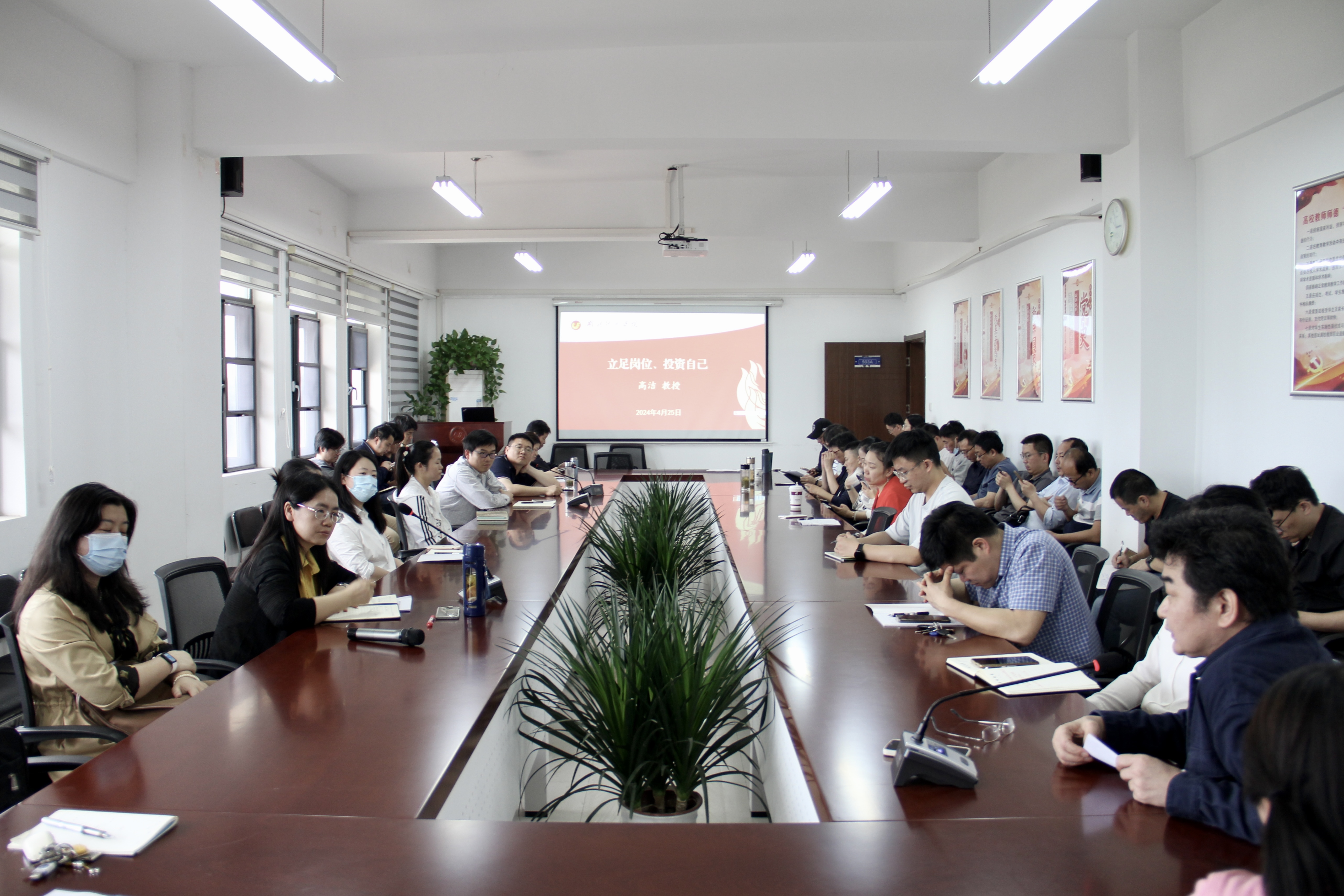 高教授从为什么要立足岗位,投资自己、教师对自身职业该有清醒的认识、教师该如何投资自己等三个方面跟与会教师分享了自己从业30多年的经验与做法,鼓励全体教师,特别是青年教师立足自己的岗位,树立良好的职业道德与理想,务必吃透教材、站稳讲台;多多阅读,开阔视眼;多向同行学习,努力提升自己。同时,高教授还建议各位老师在科研方面一定要有开放的心态,鼓励大家团队作战,拓宽自己的研究领域。