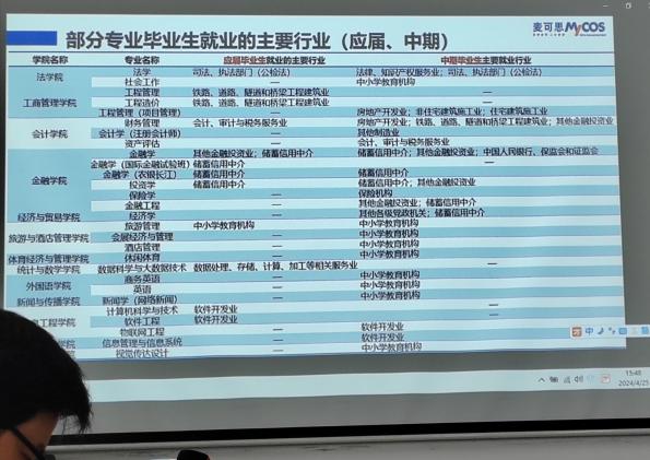 麦可思研究院毕曦经理从项目调研背景、主要数据解读和数据应用三个方面,结合详实的校本数据和分析图表,对报告进行综合分析解读,从学校、学院、专业等层面对关键数据进行连续纵向对比,以及不同指标和国内同类院校水平作横向比较。通过数据对比发现,我校整体学风满意度、学习主动性较以往有所提升,毕业生就业质量在同类高校中具有优势,同时学生对跨学科知识提出较高诉求。