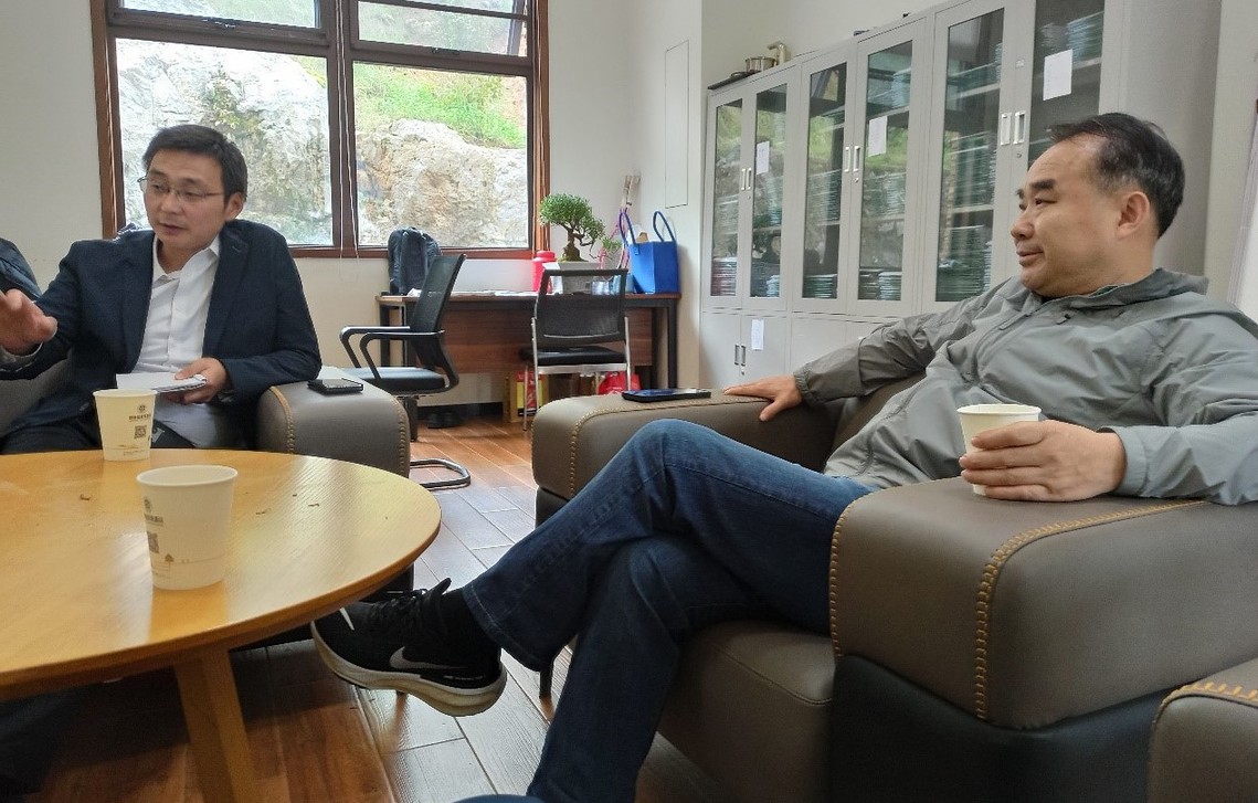 与绿葱坡旅游开发公司董事长毛振东、副总经理胡陶木座谈